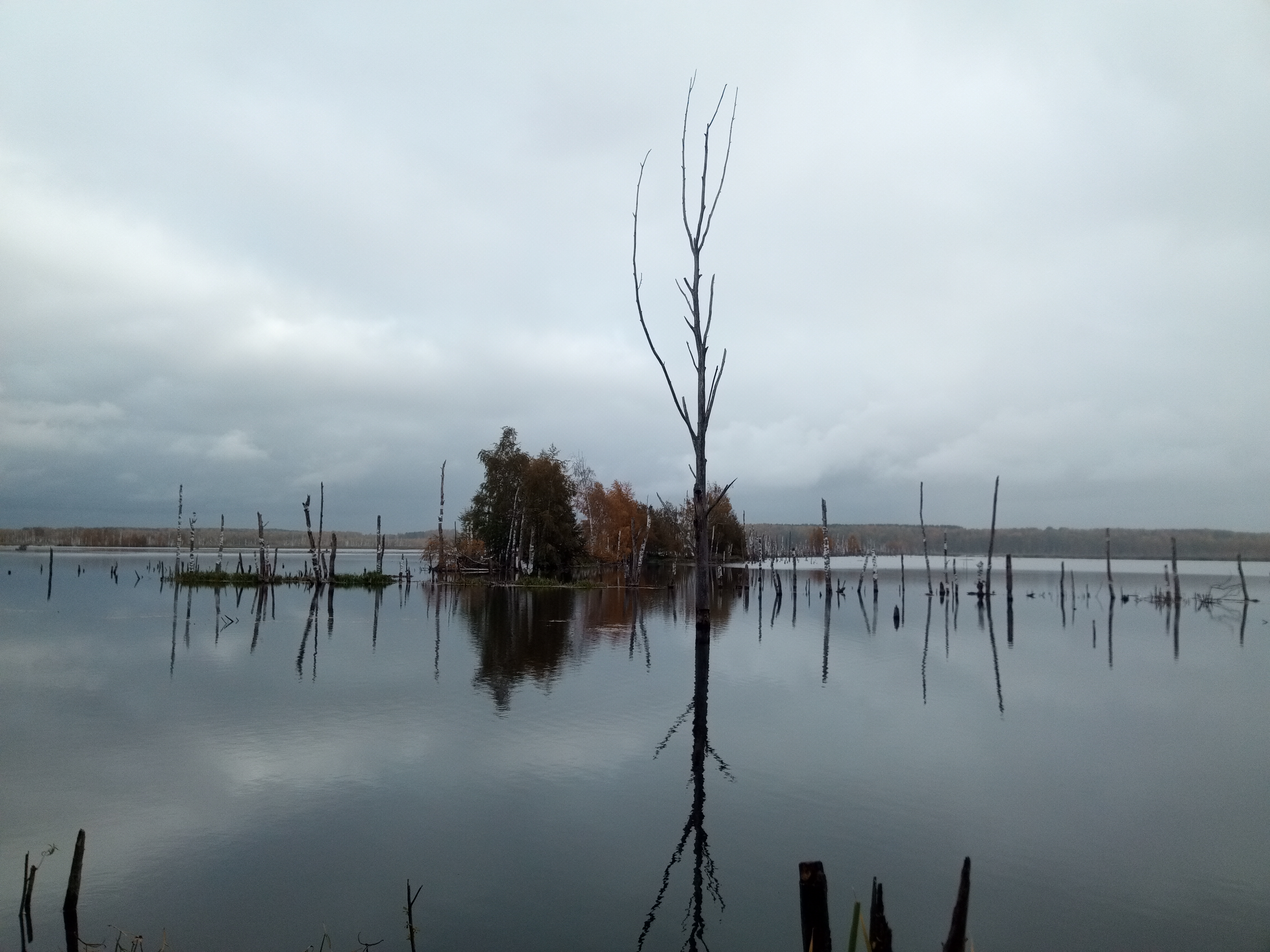 Справа, да, было нечто типа водяной глади с утками по осени, но это всё было в легкопроходимиой по суше вокруг обёртке. (до поднятия уровня воды)